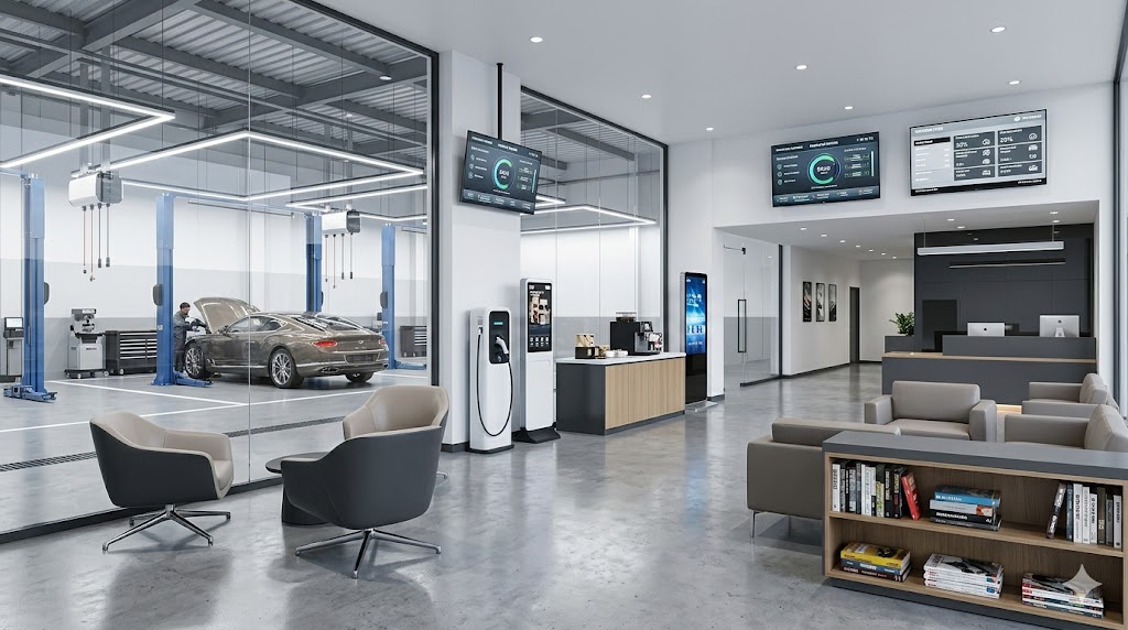 Không gian tiếp khách hàng cần được sắp đặt gọn gàng, sạch sẽ và chuyên nghiệp. Đây là nơi tạo ấn tượng đầu tiên với khách hàng khi họ đến gara.