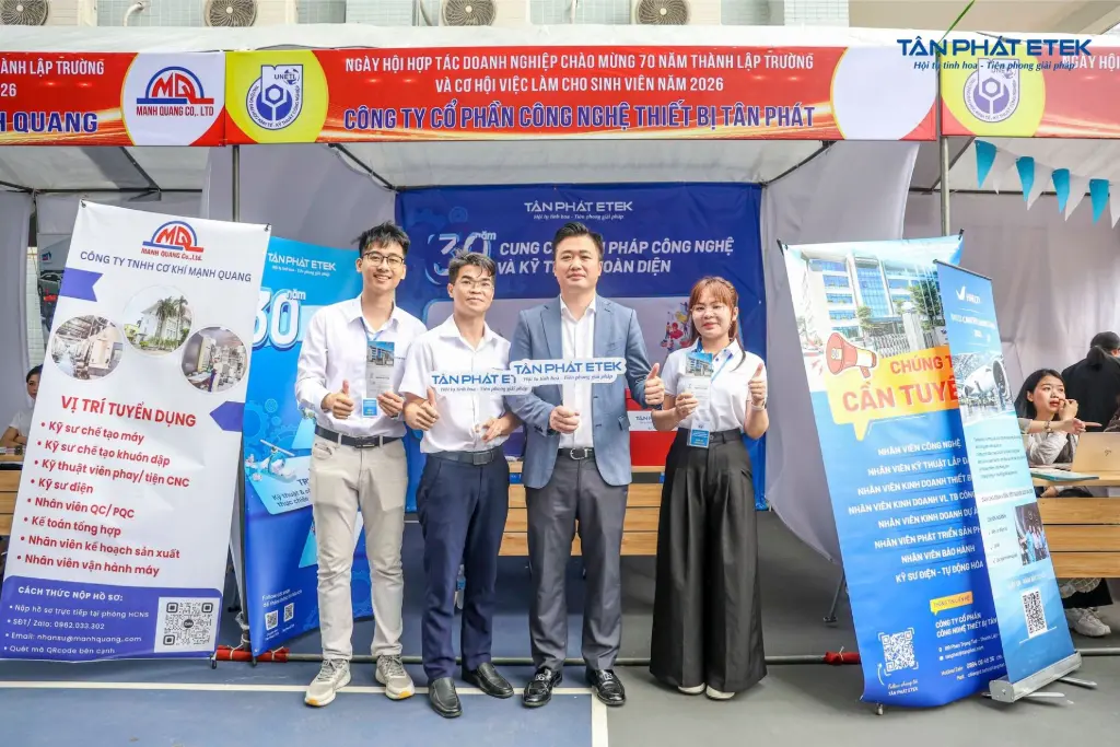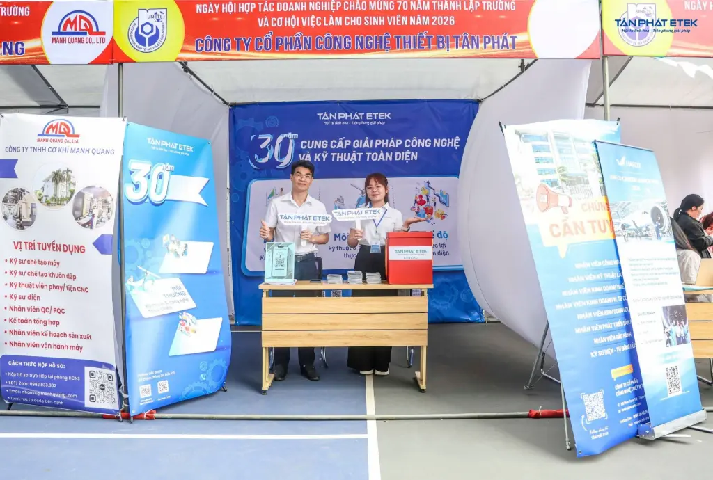 Ngày hội việc làm tại UNETI (Đại học Kinh tế - Kỹ thuật Công nghiệp) đã trở thành điểm hẹn sôi động giữa doanh nghiệp và sinh viên, trong đó Tân Phát ETEK là một trong những gian hàng thu hút sự quan tâm đặc biệt. Sự kiện không chỉ mang đến cơ hội tuyển dụng mà còn là không gian để chia sẻ, định hướng và truyền cảm hứng nghề nghiệp cho thế hệ kỹ sư tương lai.