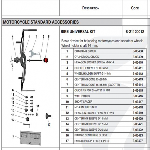 Bộ gá kẹp bánh xe máy - Phụ kiện dùng cho máy cân bằng lốp Model: SBM55S